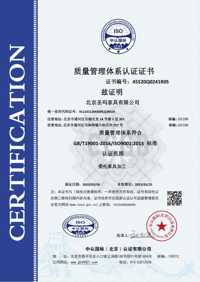 北京圣瑪家具有限公司是以設(shè)計研發(fā)、生產(chǎn)、銷售、服務(wù)為一體的專業(yè)化辦公家具制 造企業(yè);主要經(jīng)營辦公家具、校園家具、實驗室家具、酒店套房、全屋定制類等家具。 公司成立于 2017 年,生產(chǎn)基地位于天津市蘆臺經(jīng)濟開發(fā)區(qū)華澳盛世家具有限公司院 內(nèi),占地面積約 10000 平米,擁有員工 100 人左右,其中高級技術(shù)人員達(dá) 15%以上。 公司采用了南興、先達(dá)系列等先進生產(chǎn)設(shè)備,建立專業(yè)流水線,具備先進的生產(chǎn)及加 工能力。公司設(shè)有專業(yè)的產(chǎn)品設(shè)計部、運營部、質(zhì)檢部等,提供專業(yè)的 CAD 平面圖、立面 圖級效果設(shè)計圖紙。 使用優(yōu)質(zhì)的進口原材料及配件;嚴(yán)把進貨渠道,所用材料符合國家環(huán)保標(biāo)準(zhǔn)要求。款 式上依據(jù)人體工程學(xué)原理,追求多樣化的設(shè)計風(fēng)格。按照 “ISO900/ISO14001 族標(biāo)準(zhǔn)” 的 要求,嚴(yán)格控制每一個環(huán)節(jié)。 并本著“以質(zhì)量求發(fā)展,向管理要效益,顧客滿意為焦點,持續(xù)改進,共筑偉業(yè)”的 宗旨方
